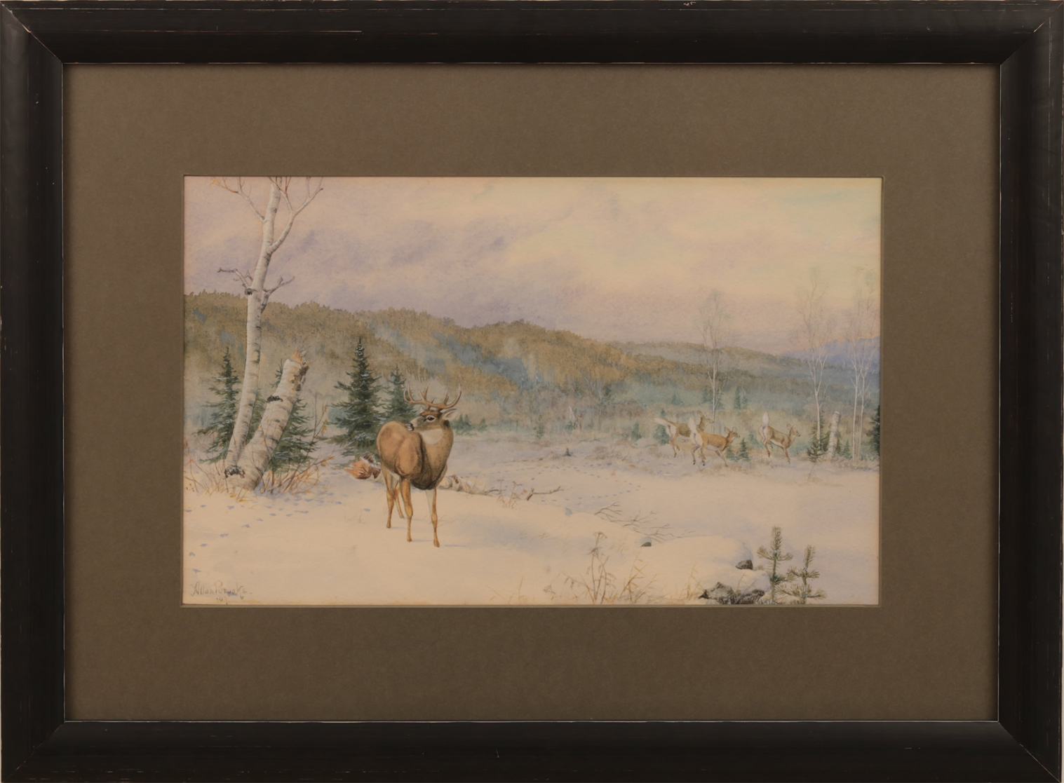 Brooks was also an avid sportsman and painted “big game” with the same fidelity as he did with birds. It has been said that his interest centers first in the animal--he cannot avoid painting a portrait, whether of caribou, antelope or cougar, and his subject dominates or overrides a scene of immortal beauty.
