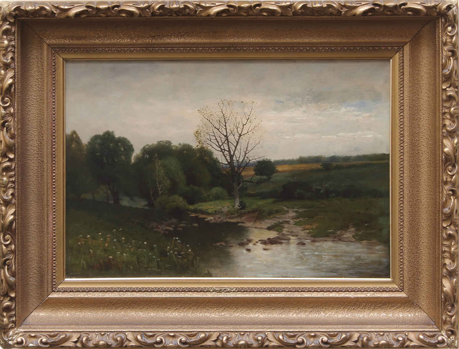 Charles Henry Eaton is known primarily for his prize-winning water-colors. He was a self-taught painter, who developed what some describe as a “sultry, low-toned style”, in the manner of tonalism. His landscapes do not emphasize the minute detail of a scene, but serve to capture the spirit of the place, in the fashion of George Inness.
