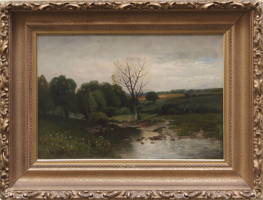 The “Last Days of Summer”, marvelously captures his low-toned style to the extent that you sense the last gasp of summer. Eaton exhibited widely—Exposition Universelle; World’s Columbian Exposition; American Water Color Society; Boston Art Club, Brooklyn Art Association; Lotos Club; National Academy of Design and the Western Art Association.