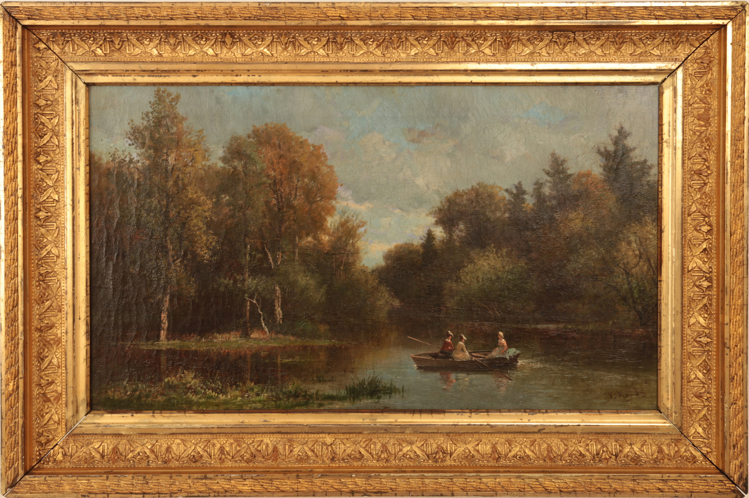 Frederick Rondel, born in Paris in 1826, where he had studied under romantic marine and landscape painters Auguste Jungelet and Theodore Gudin. Upon arriving in Boston, Massachusetts in 1855, he made a living as a lithographer and a painter and moved to South Malden, Massachusetts in 1859. Rondel lived in New York City from the late 1850s and early 1860s, but after receiving commissions in 1862 from Matthew Vassar, founder of Vassar College, to complete two paintings—one of the Vassar home in England and the second, his United States home, he moved to Poughkeepsie, New York. While there, he received a second commission from Poughkeepsie businessman, Henry Frost to paint a genre scene called “The Picnic”. Rondel made a last trip to Europe in 1862 and returned in 1865. He had become a member of the National Academy of Design in New York City in 1861, and upon his return, he began teaching there. He had among his students Winslow Homer (Homer’s only formal art training), Charles T. Phelan, and Felix Benedict Herzog (electrical engineer, patent attorney, artist and photographer). He spent his time in New York state, painting scenes of the Hudson River Valley, Adirondack Mountains and traveling throughout New England. Rondel, who painted in the manner of the Hudson River School, is considered to be a “4th tier” Hudson River School artist. In 1892 Rondel moved to Philadelphia, Pennsylvania where he remained until his death in 1892. 1868 he made a painting of a third, earlier, Vassar family home. Rondel traveled to San Francisco in 1875. He exhibited at the Brooklyn Art Association, National Academy of Design, the Pennsylvania Academy of the Fine Arts (Philadelphia), Boston Athenaeum and the Art Institute of Chicago.