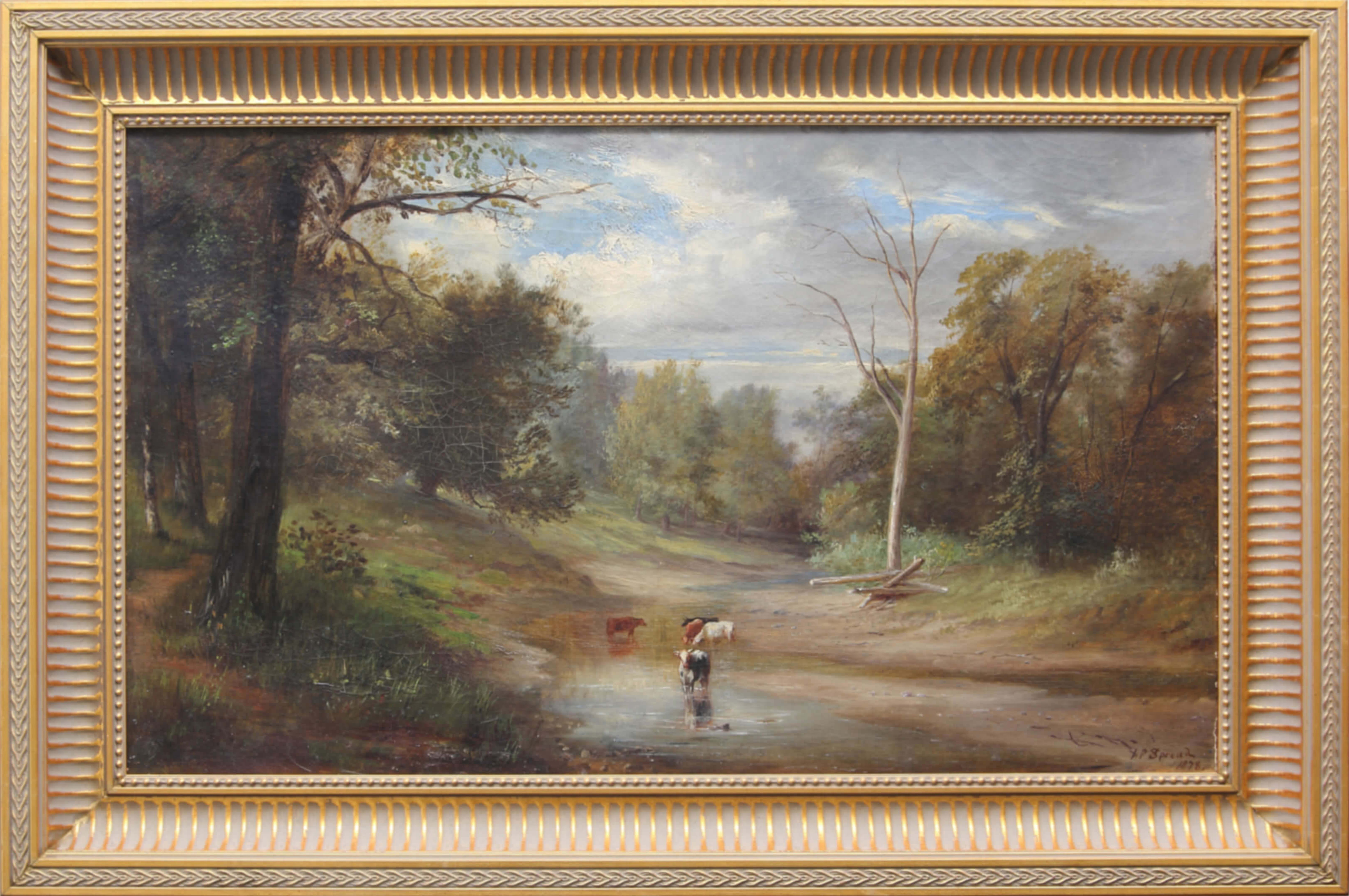 William and Susan L.Spread was born in Kinsale, Ireland and immigrated to the United States in 1870. He studied painting with William Riviere, Henry Warren and Ernest Slingeneyer. In 1864 he moved to Melbourne, Australia where he concentrated on portraiture. Once in the United States, Spread first settled in New York City, but shortly moved west to Chicago, Illinois shortly before the “Great Chicago Fire” of 1871. There were a number of artists residing in Chicago at the time, including Mary Cassatt, all of whom lost much of their art works during the conflagration. Most of the artists left Chicago; however, Spread persevered and taught at the School of the Art Institute of Chicago and later founded Spread’s Art Academy. In 1902, his academy became the Chicago Academy of Fine Arts. Spread was named the first president of the Chicago Society of Artists in 1889. Known primarily as a portraitist, Spread also painted landscape and genre scenes. Although a skilled artist, he did not exhibit widely; his primary legacy being fostering a love of art in Chicago. Fellow artist (and former student of Spread), Ralph Clarkson, the noted Chicago society portrait painter, stated that Spread’s “fine and advice formed the careers of the men who were not only to achieve prominence as artists, but to occupy leading places as art teachers”.