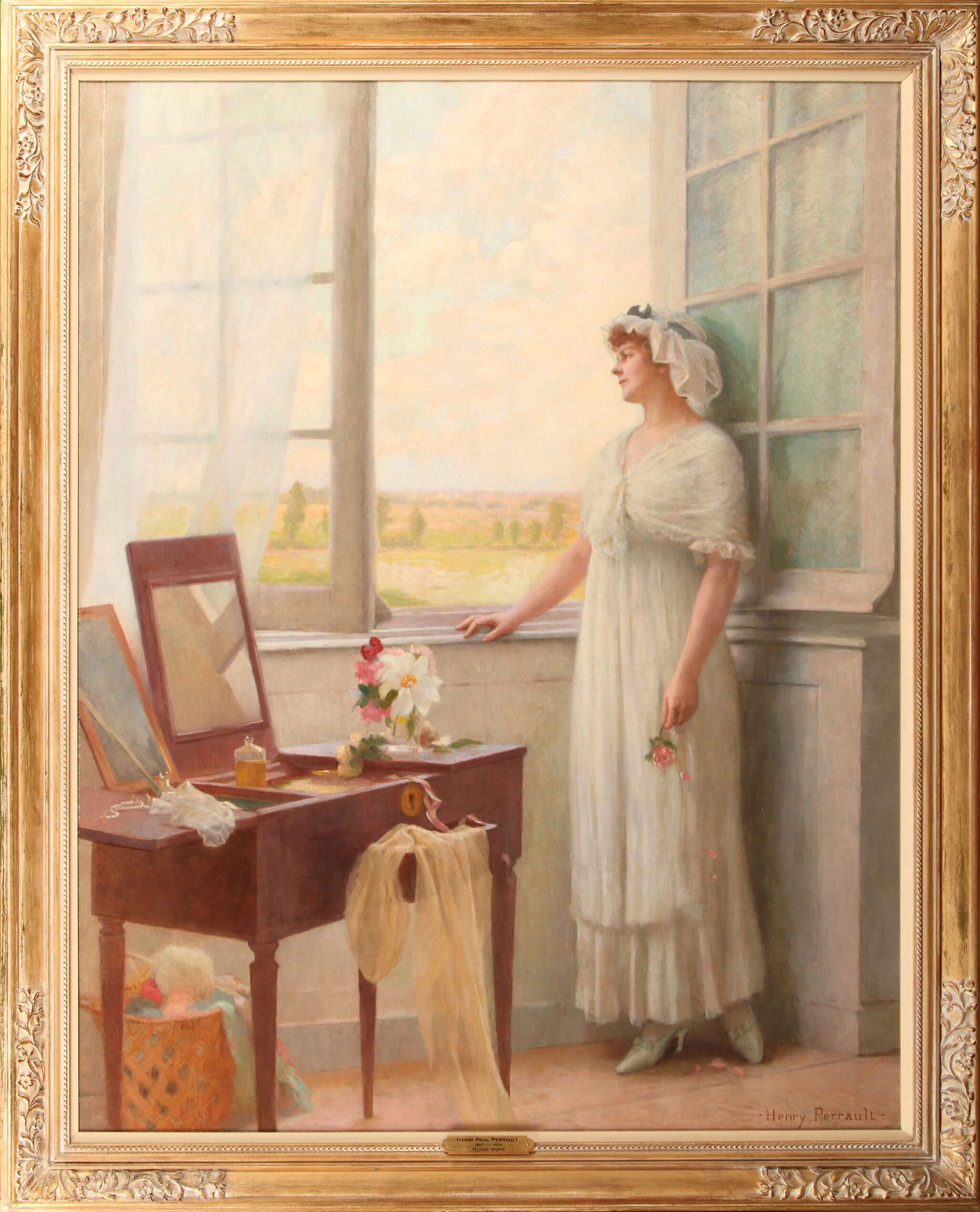 Henri Paul Perrault was born in Versailles, France, in 1867. He exhibited works in Paris at the Salon of French Artists, becoming a member in 1899. He won a 3rd place medal in 1896 and a bronze medal in 1900 at the Universal Exposition. He is best known as a genre and history painter. This monumental work is one of his best.