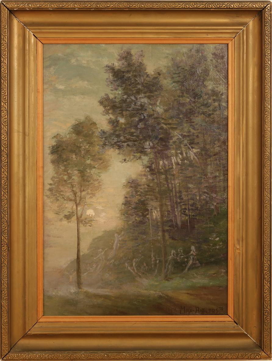 There is very little biographical information currently available for Max Antlers. It is known that he was born in Berlin, Germany. There is some uncertainty when he arrived in the United States, or how long he stayed initially; however, a 1907 article in the New York Times mentions that Antlers had returned to New York City from Paris, where he had been studying with Jules Joseph Lefebvre at the Académie Julian. He also studied at the atelier of Tony Robert-Fleury. After his return to New York City, he set up a studio on Washington Square South. In 1913 Antlers exhibited his paintings in Berlin, which were viewed favorably by art critics. At that time, he was reported as living in Munich and was going to return there after the Berlin exhibition. It was not until the 1920s that Antlers was to make the United States his permanent home, settling in San Francisco, California, where he was to remain for the rest of his life. He painted scenes of Crater Lake and Yosemite, which were exhibited in 1947 when was 75. Antlers was a member of the Salmagundi Club and exhibited at the Boston Art Club (1907 – 1908) and the Corcoran Gallery (1907).