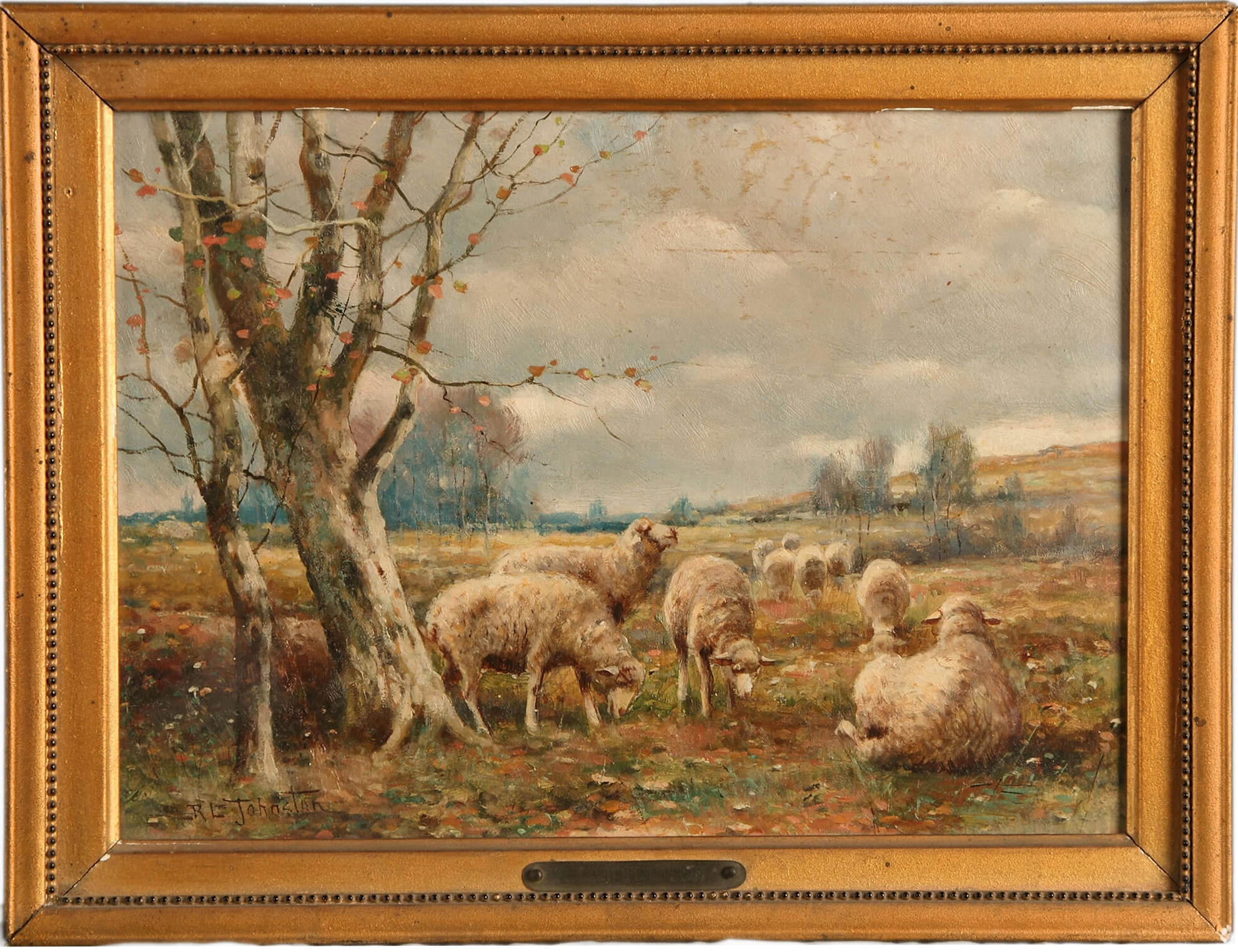 Reuben LeGrande Johnston was born in Alexandria, Virginia and was a member of Washington Society and world traveler. He was self-taught, but is known to have studied art with Adalbert Volck in Baltimore, Maryland. Although Johnston is best known for his landscapes with animals, he painted portraits and genre scenes. He was well-traveled, visiting France, Spain, England, Tangiers and Morocco, the latter where some of his works were executed. He also traveled to the American west where he painted, notably Cheyenne, Wyoming. He was a member of the Society of Washington Artists (DC), where he exhibited, in addition to the National Academy of Design.