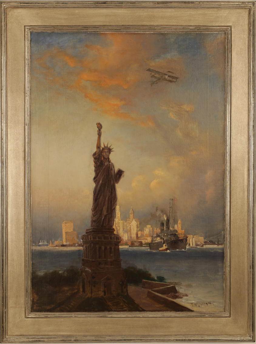 His subjects included genre (women and children), landscapes, enchanted gardens, country-sides, cottages, animals and pets. He also painted Indians and Indian maidens and the “Wild West”, although he had never visited the West, and historical and contemporary themes, hunting and fishing scenes, adventure, ships, and historic figures such as Washington, Lafayette, Franklin and Theodore Roosevelt.