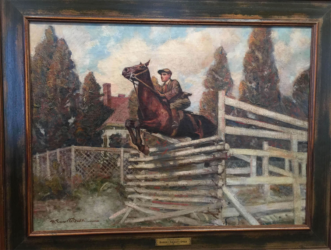 In 1923, he was commissioned by Stephen H.P. Pell, founder of the Fort Ticonderoga Museum for another series of images. Later commissions included those for Edward Stettinus,Jr., former U.S. Secretary of State and Percy Rockefeller. In 1920 Owen, moved back to New York City and opened the Robert Emmett Owen Landscape Gallery, where he exhibited and sold his own work. The business operated until America’s involvement of World War II, after which, he closed the gallery. Owen moved to New Rochelle, NY and became the artist in residence at the Thomas Paine Memorial Museum. Owen exhibited widely, including at the former Corcoran Gallery of Fine Art, the Pennsylvania Academy of the Fine Arts and the Art Institute of Chicago, among many others. (Attribution: Spanierman Galleries, LLC).