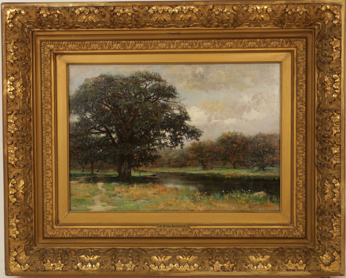 William and Susan L.Although little biographical information is currently available for landscape painter, Robert Ward Van Boskerck, we know that he was born in Hoboken, New Jersey and graduated from the Columbia University School of Mines in 1877. Engineering was not to be his calling, though. He took art instruction from Luminist painter R. Swain Gifford at the Cooper Union for the Advancement of Science and Art in New York City and Tonalist landscape painter Alexander Helwig Wyant. He painted scenes along the Ottauquechee River near Woodstock, Vermont, the Keene Valley in the Adirondack Mountains, the Great Salt Pond in Wakefield, Rhode Island, Peace Dale, Rhode Island, Hackensack Valley, New Jersey, and Greenport, Long Island.