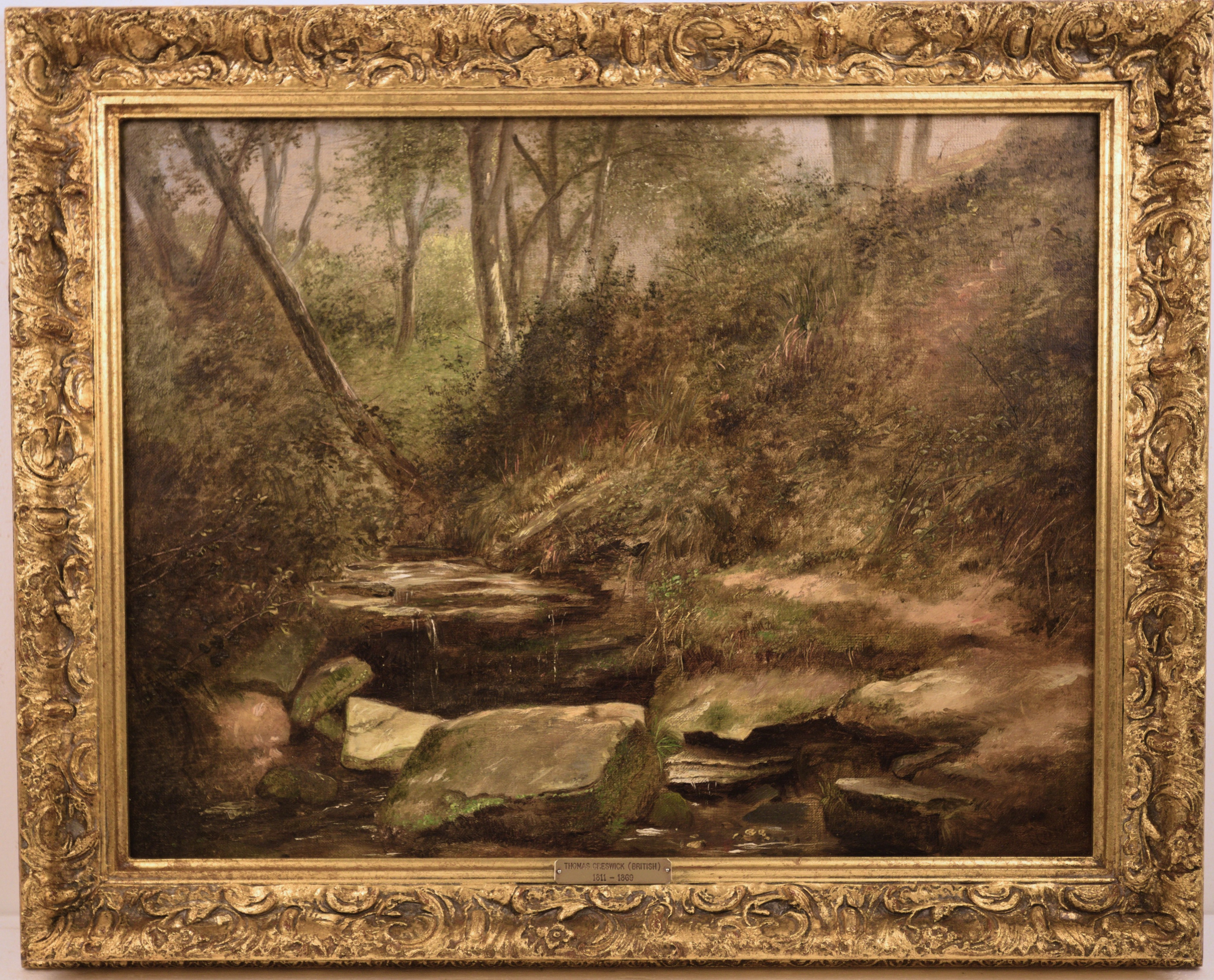 Creswick was born in Sheffield, England and studied with Birmingham landscape painter John Vincent Barber. He was just 16 years of age when he exhibited a landscape at the Birmingham Exhibition in 1827. The praise he received resulted in his sending two landscapes to the Royal Academy in London and in 1832 he moved there from Birmingham. Creswick would exhibit at the Academy from 1828 to his death in 1869. He would exhibit his landscapes at the British Institution and the Society of British artists as well. In addition to painting, he was sought after as a book illustrator.